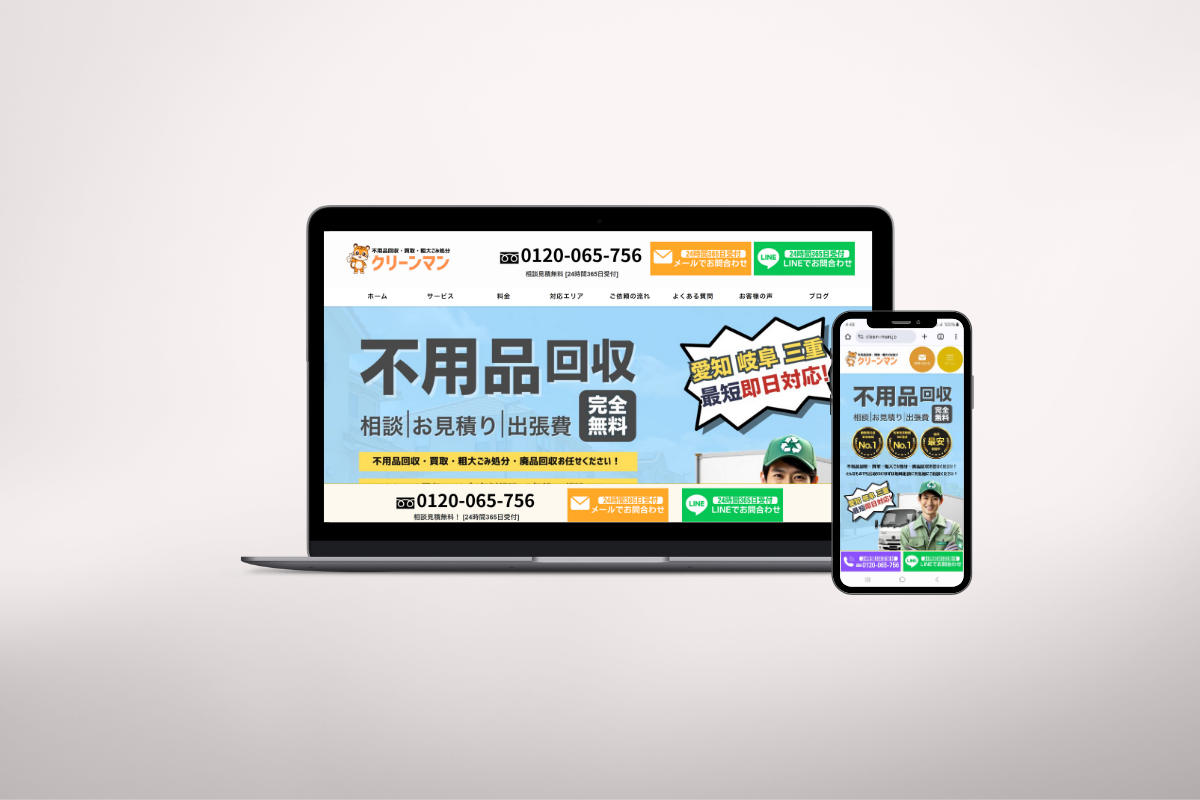 業種サービス業制作内容ホームページ制作制作期間1ヶ月URLhttps://clean-man.jp WORKS ウェブデザイン 株式会社DONNB様 里ライフ不動産様 関連記事 YURIサポート株式会社様 Majozone株式会社様 TRANS MAI様 SUISO JAPAN神奈川様 株式会社GARNIER様 SUISO SALON SUILIVE様 SUISO SALON SUILIVE様 株式会社SUSUMI様